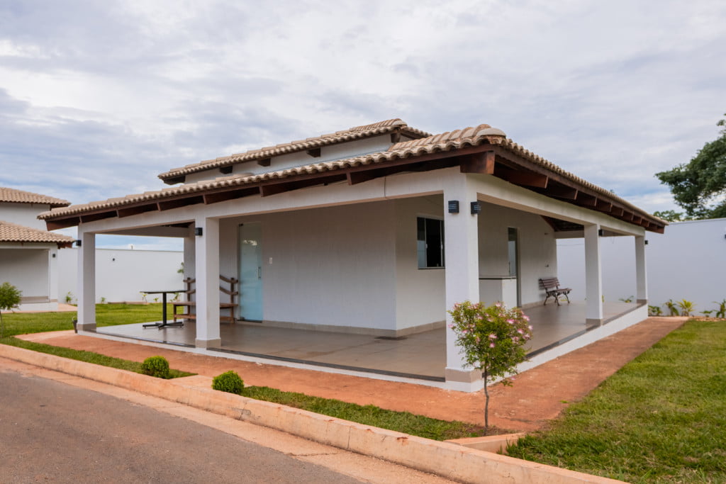 Mobiliário planejado, cama de casal. Banheiro completo (não possui banheira).